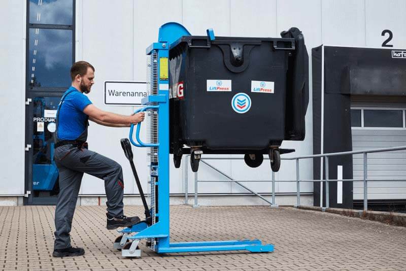 Mit dieser Kombination aus LiftPress und Hochhubwagen müssen Sie nie wieder hohe Entsorgungsgebühren in Kauf nehmen. Anfallende Abfallmengen werden bis zu 50 % reduziert, sodass sich die Anschaffung bereits nach kurzer Zeit rechnet. Der Müll wird so gepresst, dass der Container nicht beschädigt wird. Die Rollen werden gar nicht belastet. Der Liftpress besteht aus 2 Teilen die jeweils ca. 20 kg wiegen. Die Montage ist von einer Person einfach durchzuführen.