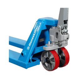 Der Hubwagen BF-SL spart wichtige Zeit beim Arbeiten mit Paletten. Er ist mit seinen verschiedenen Gabellängen von 800, 950 und 1.150 mm für fast jedes Lager geeignet. Die Tragkraft beträgt 2.500 kg und auch die übrigen Maße entsprechen denen eines Standard Hubwagens. Grundsätzlich ist der BF-SL mit Rollen aus Polyurethan ausgestattet. Diese sind geräuscharm, abriebfest und besitzen eine starke Bodenhaftung.