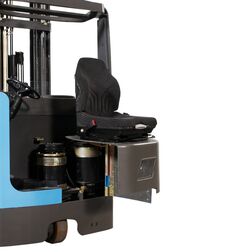 Das durchdachtes Ergonomiekonzept gewährleistet ein entspanntes, komfortables und sicheres Arbeiten über die gesamte Schichtdauer. Der Batteriewechsel ist unkompliziert gestaltet und unterstützt eine benutzerfreundliche Wartung. Hochwertige Hydraulikkomponenten sorgen dabei für Betriebssicherheit und Zuverlässigkeit. Für Wartungsarbeiten lässt sich der ergonomisch konzipierte Fahrersitz mühelos nach vorne klappen. Die übersichtlich angeordneten Bedienelemente ermöglichen eine intuitive und einfache Bedienung.